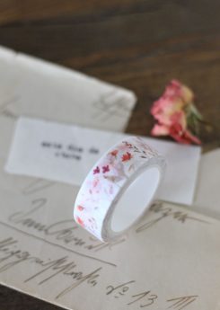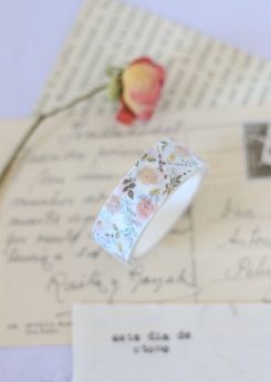 Rollo de cinta washi de 15 mm de ancho por 10 m de largo. Es un diseño cuidado con elementos postales y las preciosas ilustraciones florales de Altea Design. Es un básico.