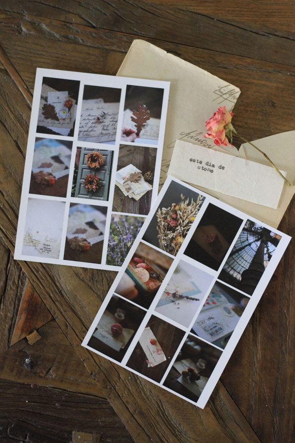 Presentamos un nuevo set de fotografías. Son dos hojas de fotografías pequeñas para usar en tus journals y adornos más pequeños. Encontrarás nueve fotografías diferentes a todo color en cada hojita, impresas en papel de 200 gramos. Para usarlas, solamente tendrás que recortarlas.