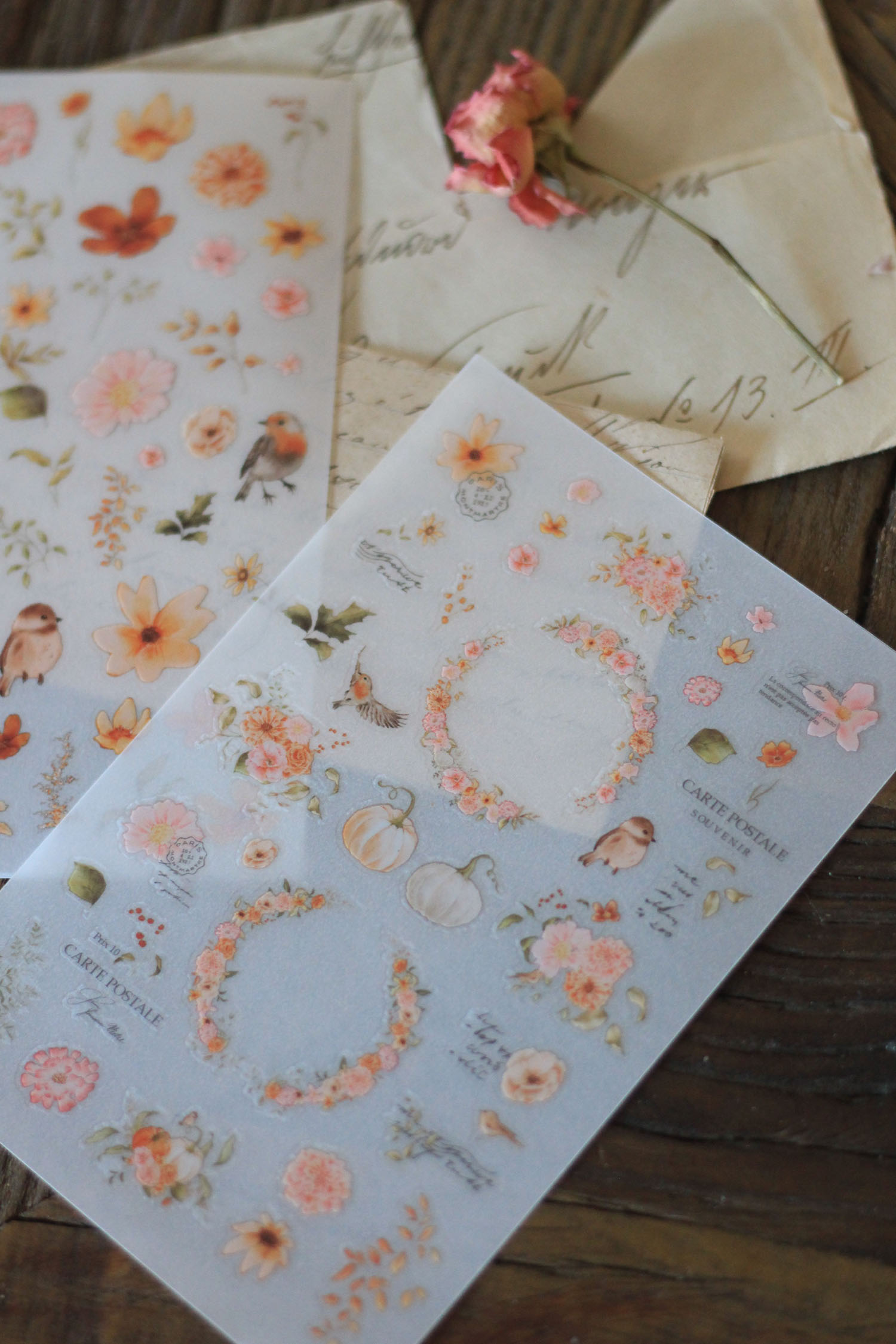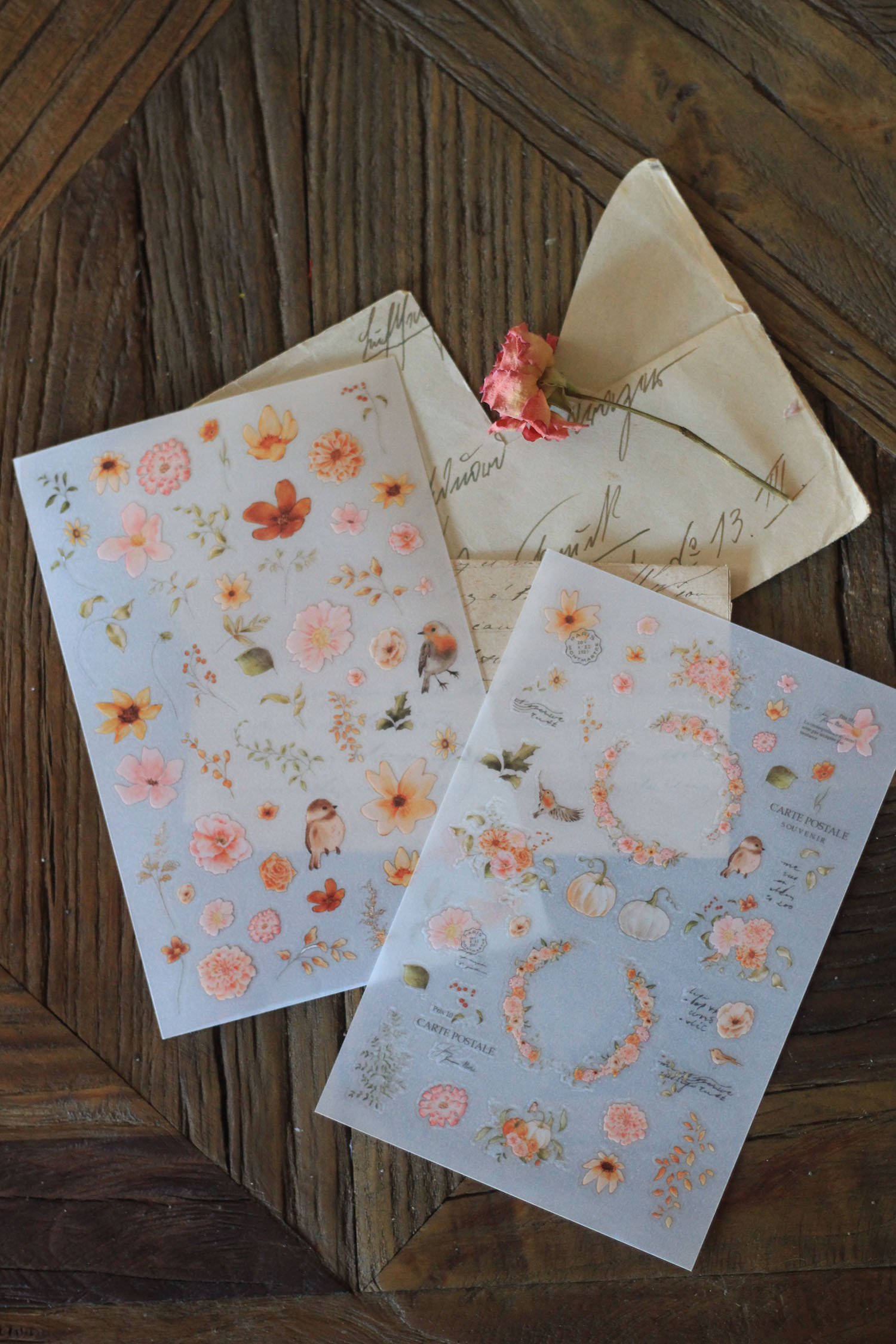 Set de dos hojas de pegatinas transferibles.
